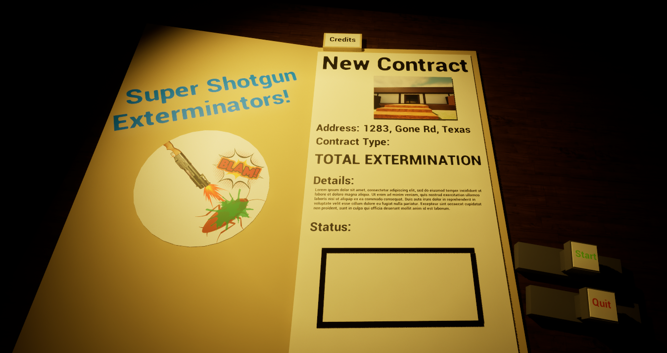 Super Shotgun Exterminators is a completed academic project where you play as a bug exterminator who has been hired to clear out an infestation, with your favorite tool, a shotgun.